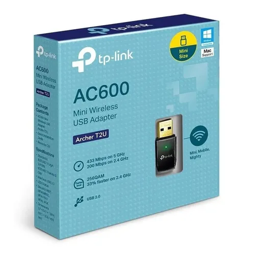 Adaptador Wireless USB TP-LINK AC600 T2U 200MBPS Em 2.4GHz e 433MBPS Em 5GHz